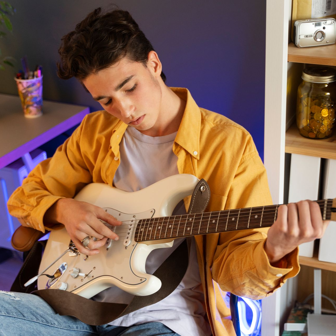 Aprender guitarra te permite acompañar canciones, desarrollar tu oído y mejorar la coordinación. Es un instrumento versátil, accesible y perfecto para expresarte y compartir la música en cualquier lugar.